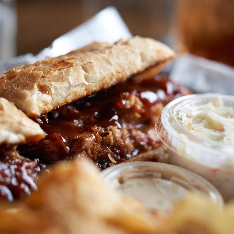 16-hour slow-roasted BBQ pork shoulder topped with pineapple slaw on a French baguette.