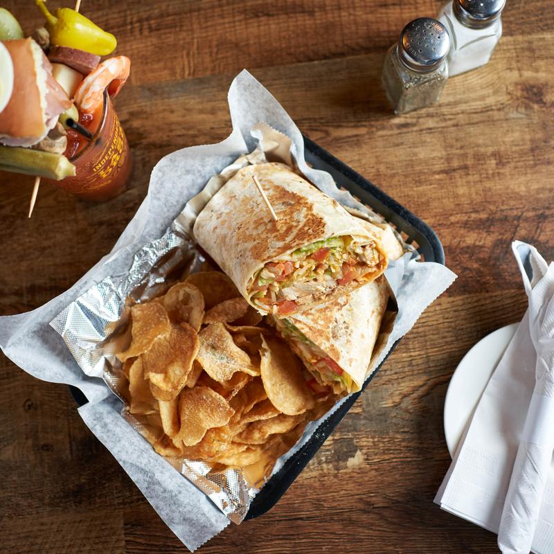 Buffalo sauce spiced chicken wrapped in a tortilla wrap with lettuce, tomato,and pepper jack cheese. served with ranch or bleu cheese dressing.